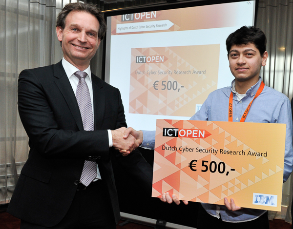 Also a special bonus from IBM, a € 500 cheque for the team of authors responsible for the best cybersecurity paper, is personally presented to the primary author and speaker by IBM Director Security Software Europe, Johan Arts.